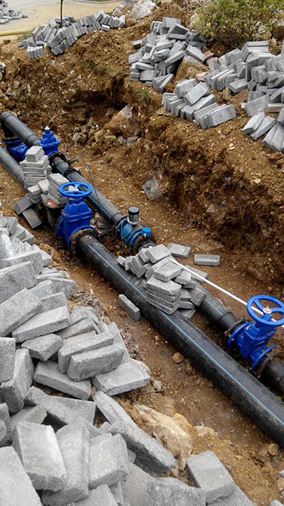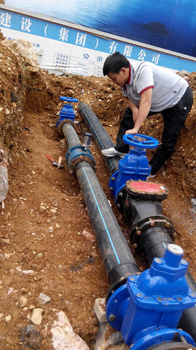 城鄉(xiāng)一體化供水計量電池供電電磁流量計安裝現(xiàn)場