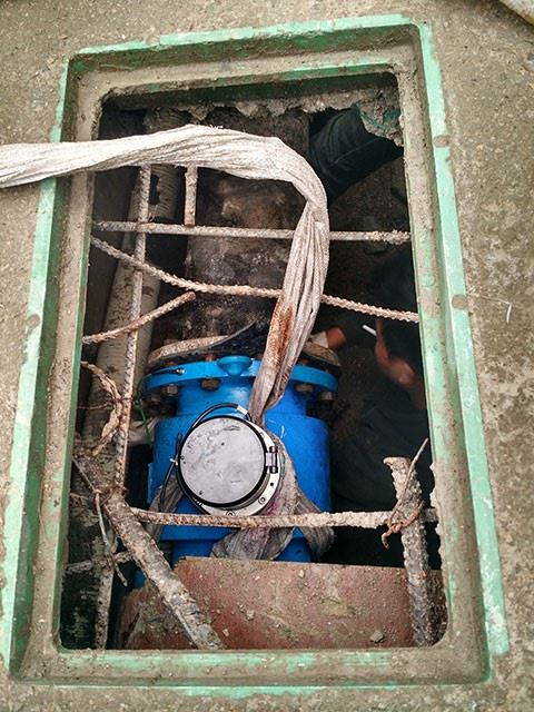 電池電磁流量計(jì)替換大口徑機(jī)械式水表安裝現(xiàn)場(chǎng)